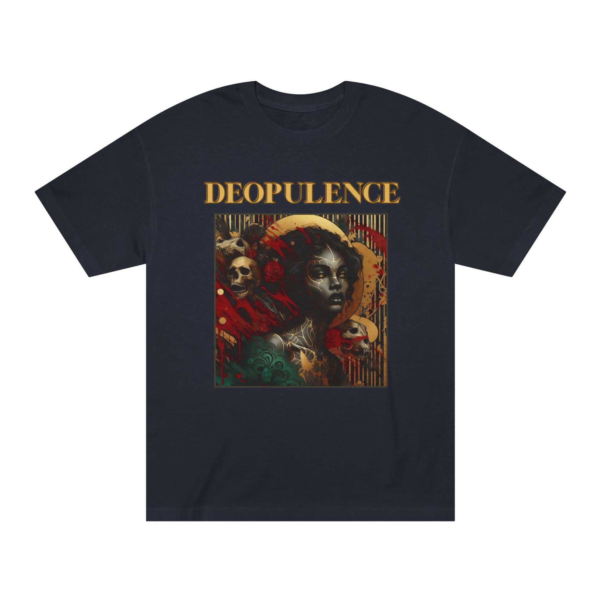 Artistic Noir Portrait Tee — "DEOPULENCE" Graphic Shirt with Gold Butterflies