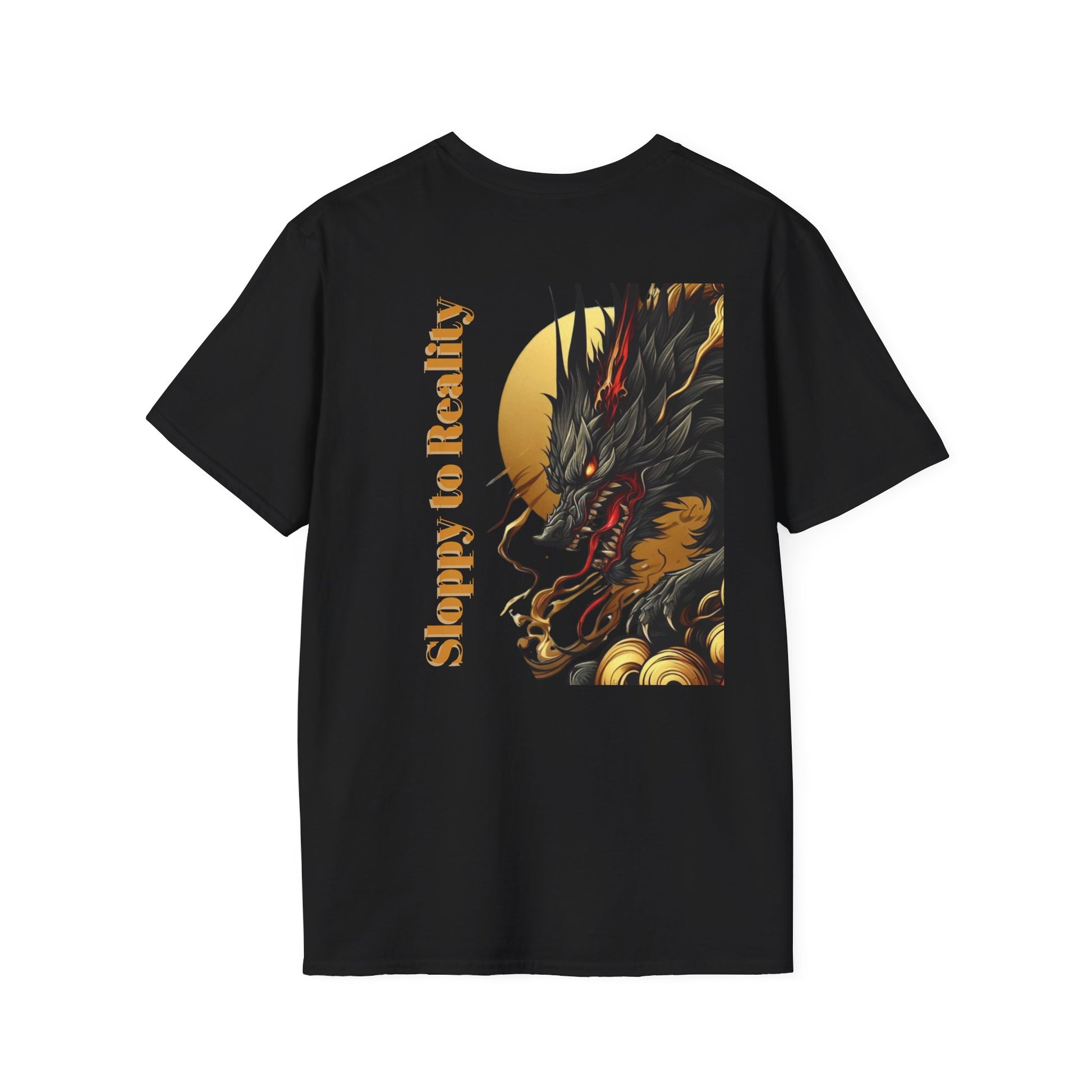Samurai & Dragon Graphic Tee, Unisex Softstyle T-Shirt, Edgy Streetwear, Anime-Inspired Apparel, Gift for Him/Her, Casual Outfit